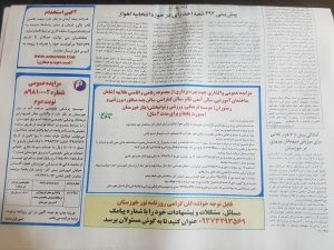 ساعت ۱۰ روز شنبه مورخ ۱۳۹۸/۱۲/۱۰ به آدرس : اهواز کیانپارس نبش خیابان آبان ساختمان مهر طبقه پنجم